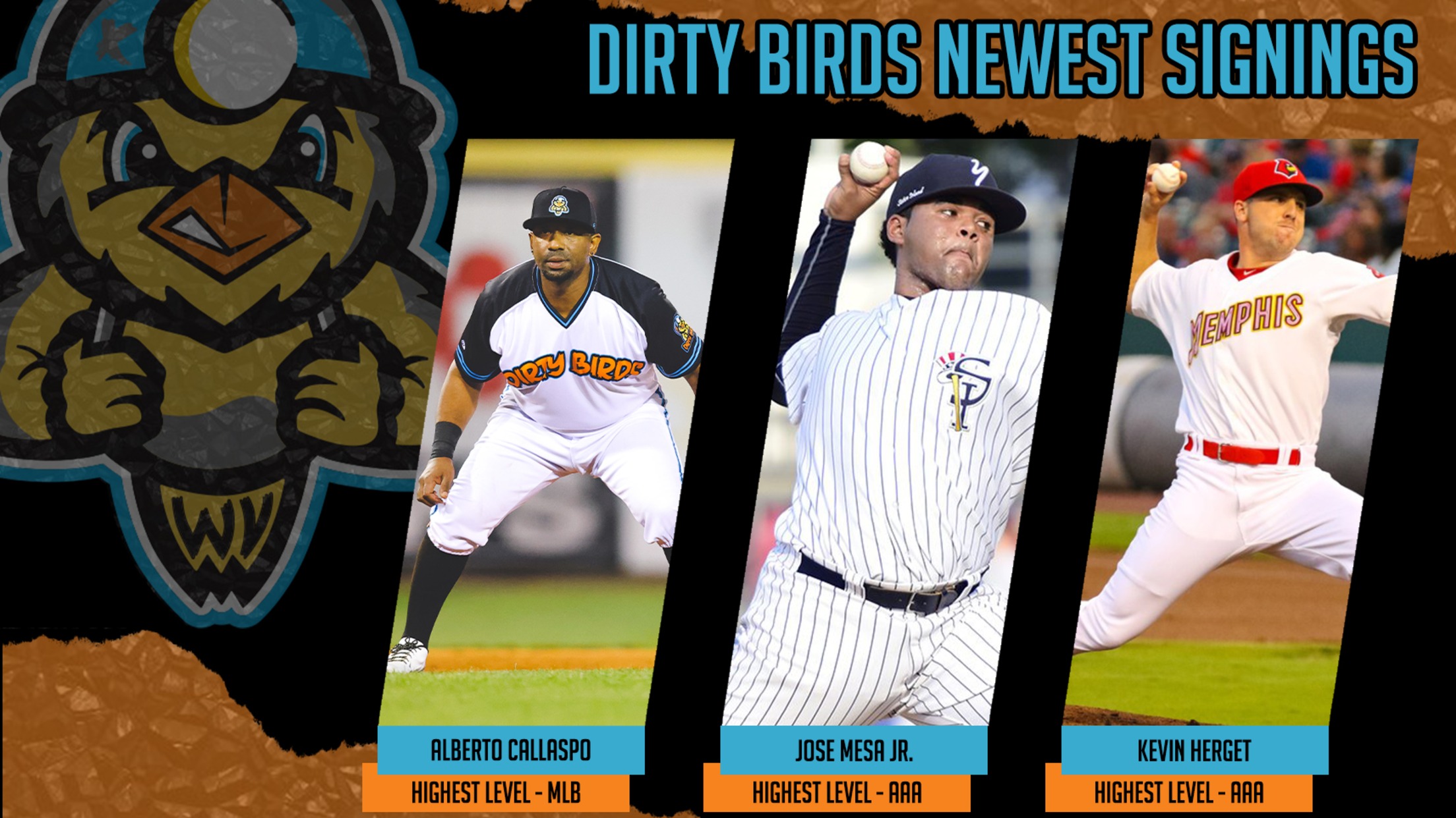 CHARLESTON, WV (March 3, 2022) – The Charleston Dirty Birds announce six new players joining the 2022 Roster. Popular Infielder and 2021 Charleston Dirty Birds’ MVP, Alberto Callaspo is returning to Charleston for the 2022 season. Callaspo made his major league debut in 2006 with the Arizona Diamondbacks and has